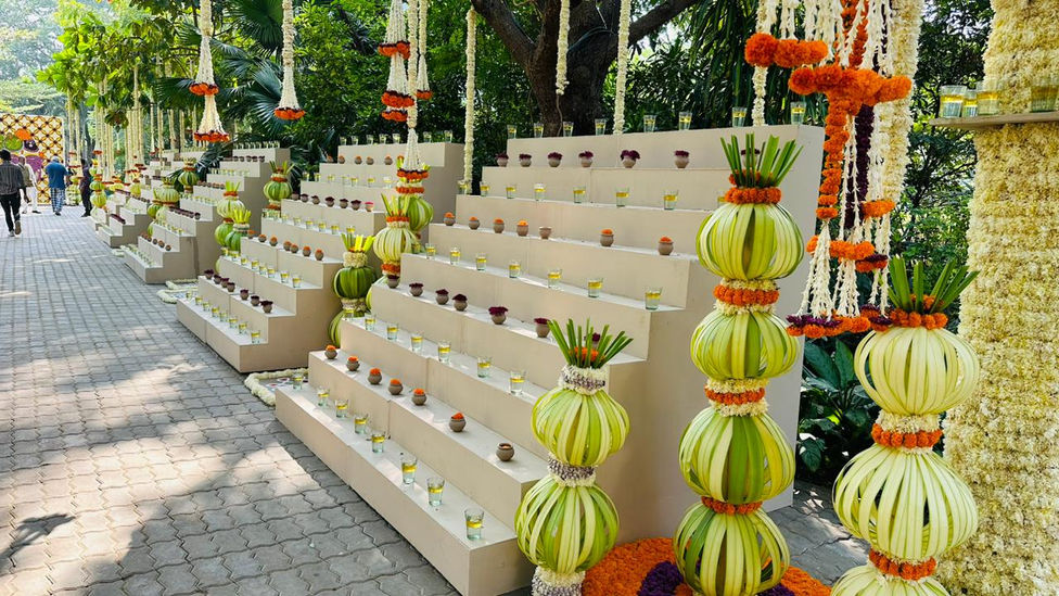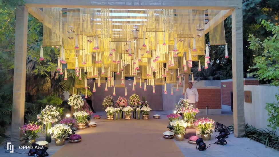 This project features enchanting outdoor event decor with floral arrangements, hanging drapes, and decorative lighting. The images capture the magical and captivating ambiance of outdoor event decorations, creating a dreamy and romantic atmosphere.
